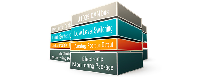 每個 HD 直線推桿都內置 Thomson 的 Electrak 模塊化控制系統 (EMCS),作為現今市場上可用的最佳板載控制器的基礎,包括可選的 J1939 CAN 總線。