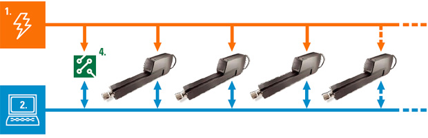 • 帶 CAN 總線的控制系統和直線推桿可直接相互通信。可快速方便地添加額外、單獨配置的直線推桿。要擴展網絡只需要電源和雙線式總線電纜。