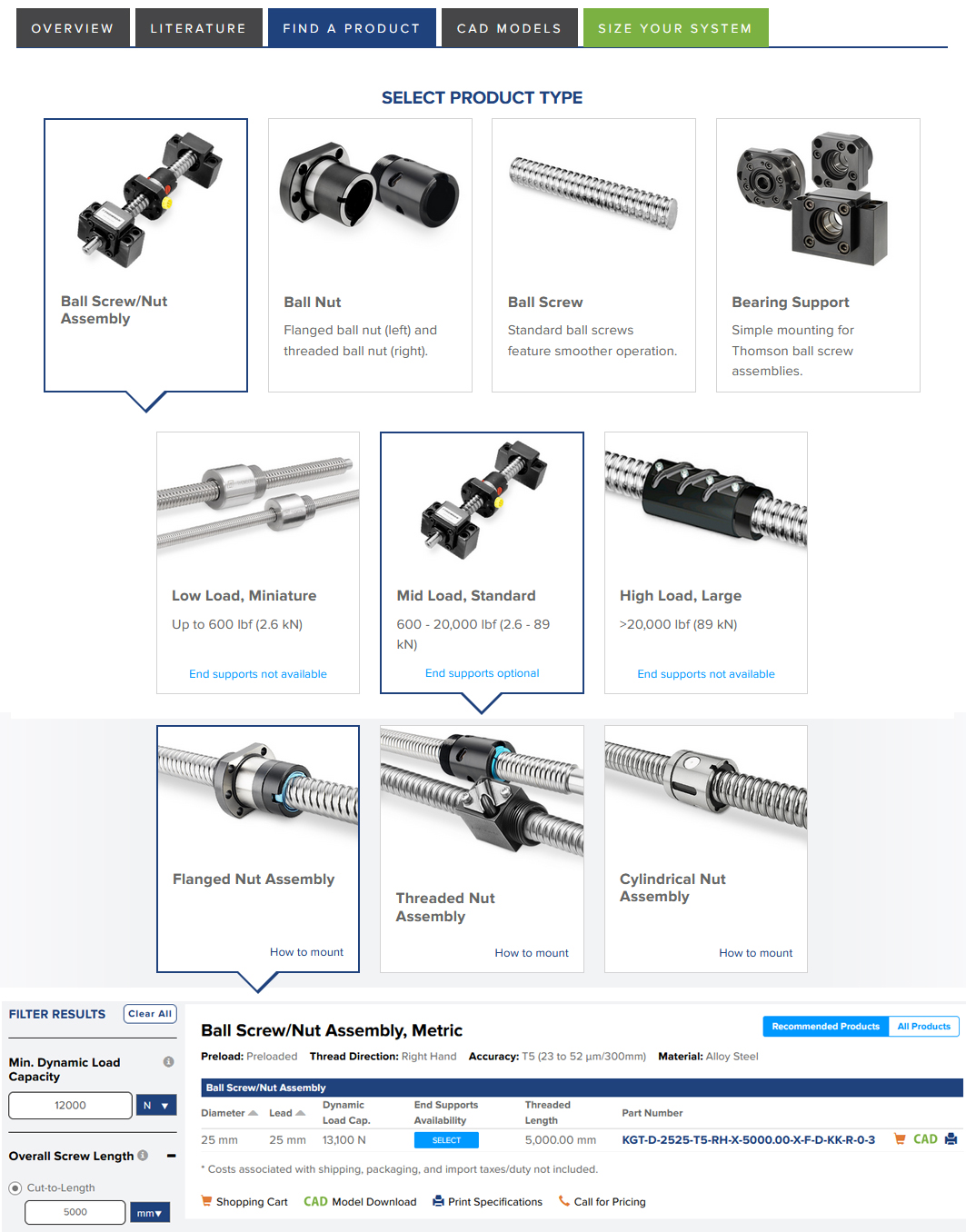 The new Thomson online product selector tool for ball screws streamlines the search, selection and overall purchasing experience