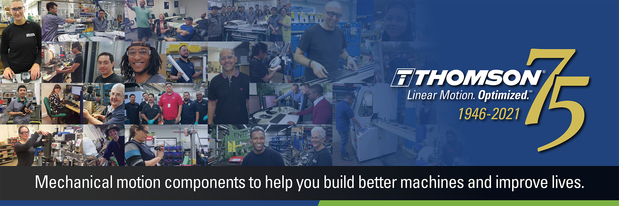“Most, if not all, of the credit to the company’s success can be attributed to a long history of dedicated, persevering employees that work together toward a common goal of fulfilling the Thomson brand promise, which is helping design engineers find the optimal linear motion solution for their applications,” said Thomson President, Scott Benigni. “Thanks to their efforts, we’re in a good position to continue serving our global customers and distribution partners with the greatest breadth of the highest-quality motion components for many years to come. Our mission is to help our customers build better machines to improve lives. I am extremely proud of the collaborative approach our team takes towards helping our customers innovate in their respective fields. From medical diagnostics and treatment and precision farming to aircraft safety and alternative enery, Thomson is partnering with our customers to find the right balance of cost, life and performance in linear motion.”