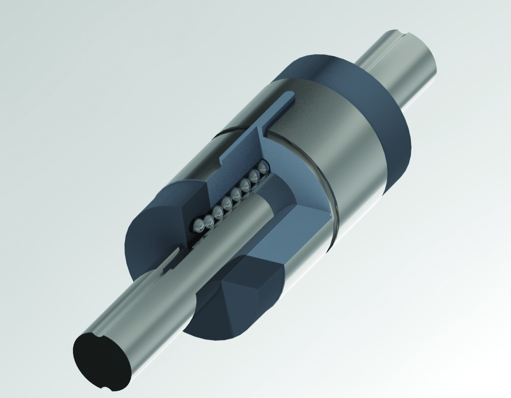The result is a highly efficient coupling device suitable for various applications involving axial load transfer or torque transmission. Ball splines resist the radial displacements caused by torque loads and need small forces to achieve axial displacement of the spline member while transmitting torque. This makes them capable of high-speed operation under high torsional loads.