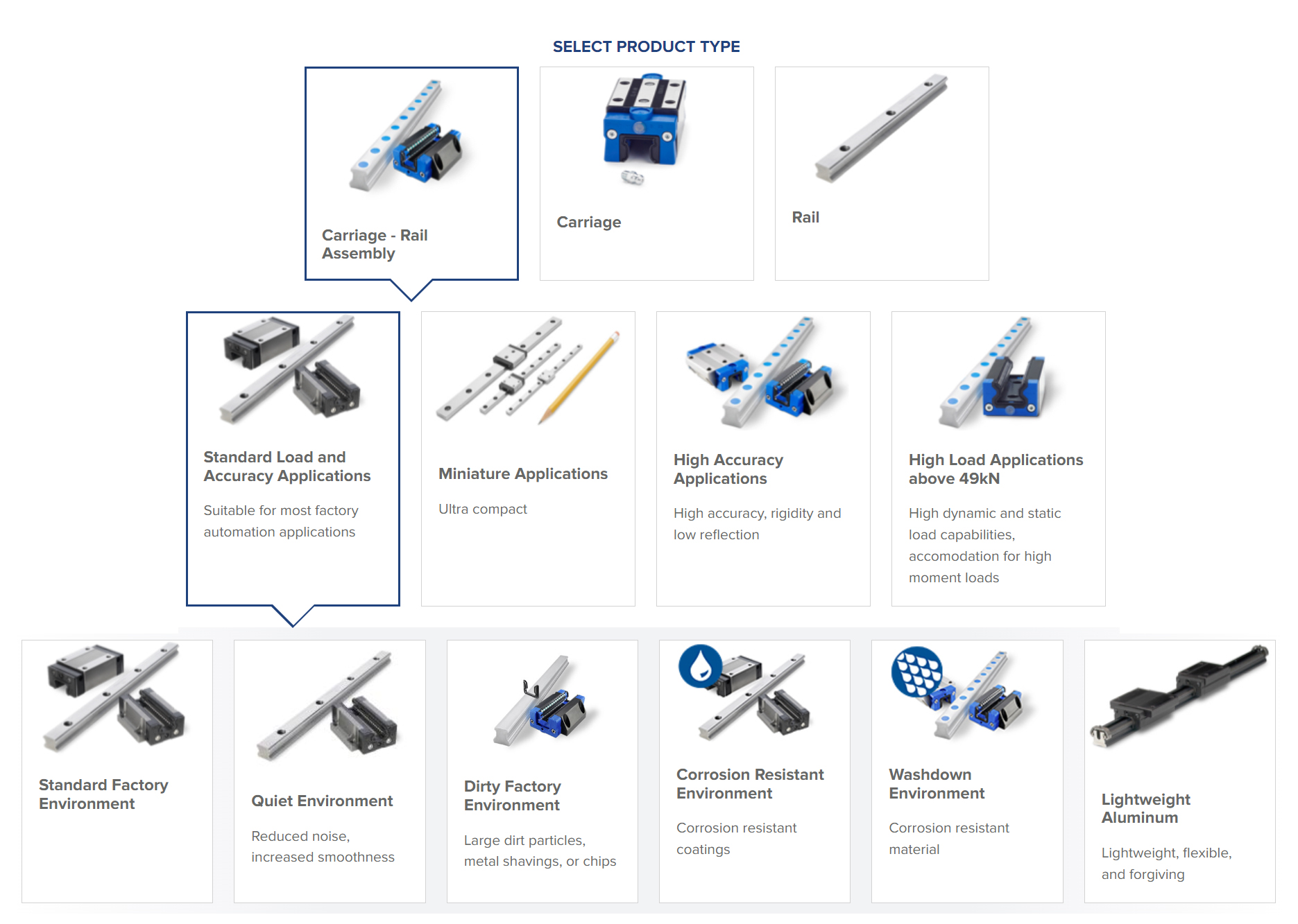 When replacing carriages reaching their end of life, owners should seriously consider new rails because they also wear and can become damaged over time. Mounting a brand-new carriage on an already-worn rail may cause the new carriage to wear and fail prematurely, possibly even catastrophically.